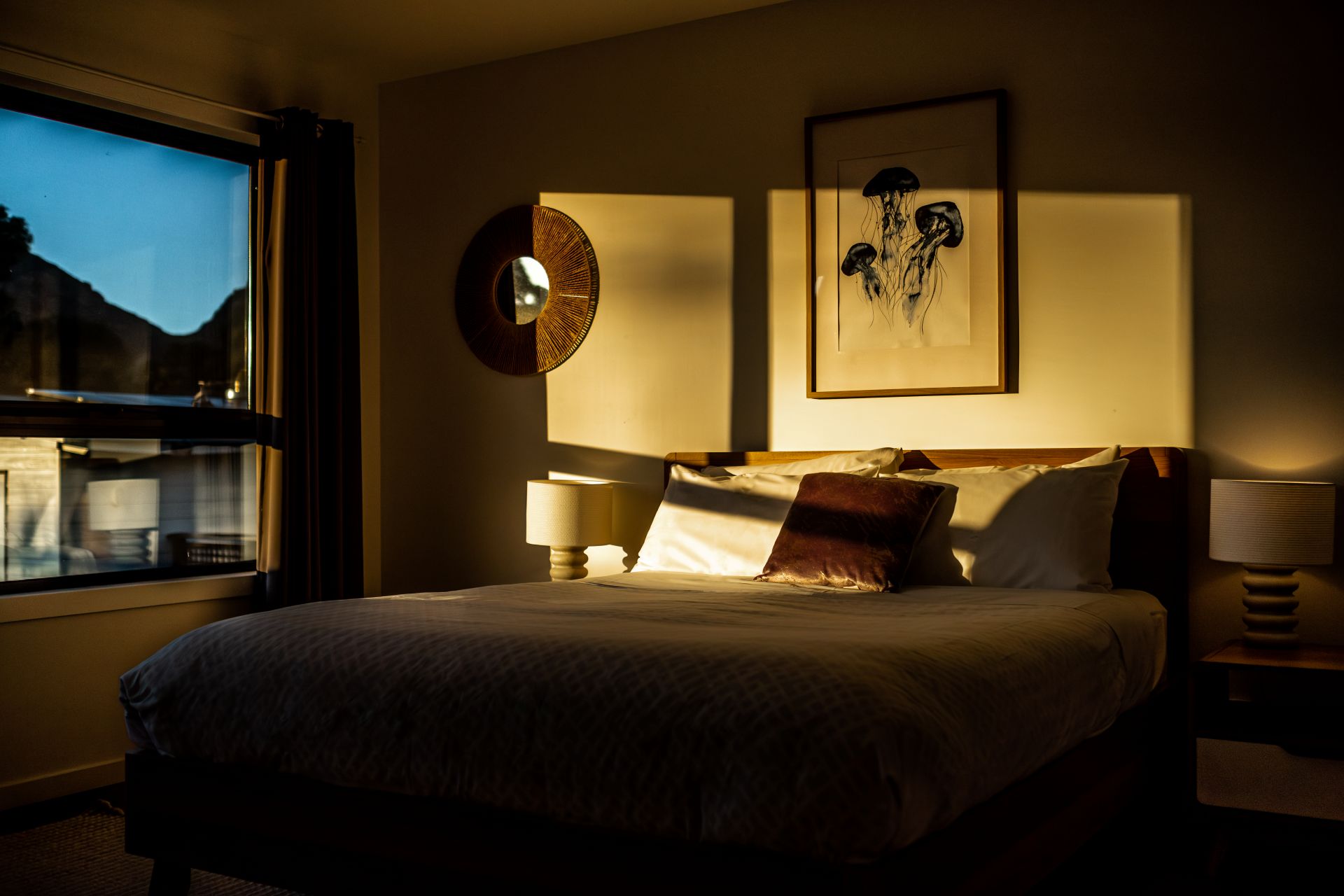 The bedrooms in Dock of the Bay continue the theme of modern elegance. Each room is carefully designed to create a serene and tranquil ambiance, allowing guests to rest and rejuvenate. Crisp linens, plush bedding, and tasteful décor contribute to an unforgettable and comfortable stay. Wake up each morning to the sight of the sun rising over the Hazards.