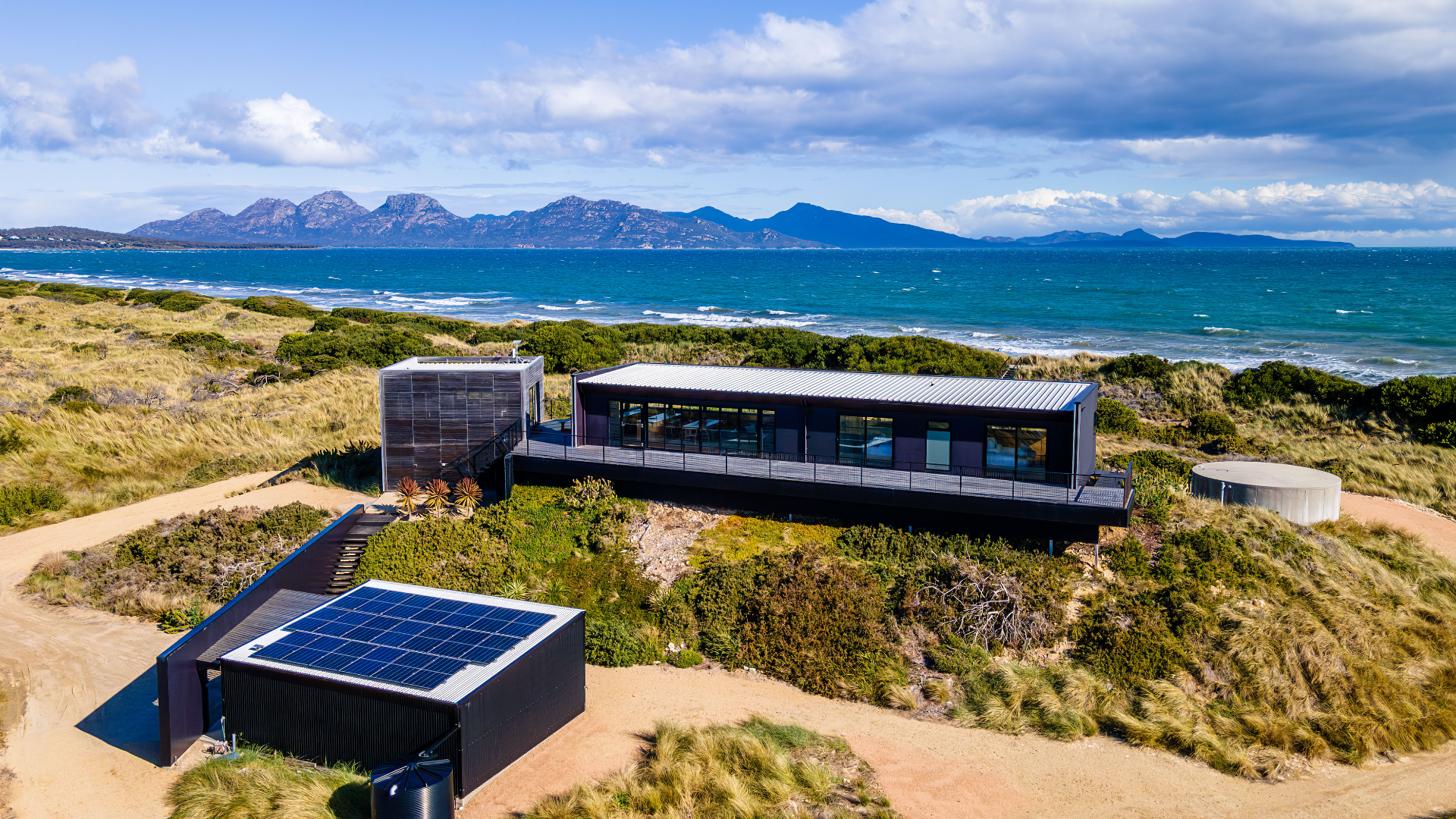 Elements is set amongst a private stretch of Nine Mile beach, located in Dolphin Sands, and overlooks the famous Hazards Mountain Range in Freycinet National Park, the home of Wineglass Bay and Schouten Island.